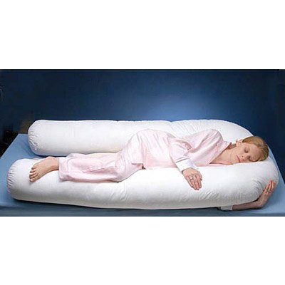 The U Shaped Maternity Back Body Pillow is a deluxe double-sided body pillow provides comfort support and the ultimate good nights sleep. This pregnancy pillow supports your back and tummy while elevating your hips to relieve stress and muscle strain.Besides this orthopedic pillow conforms to your bodys natural contour and shape. 100% polyester fiberfill and soft poly/cotton cover .